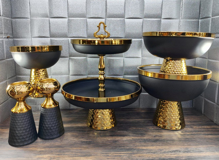 سرویس پذیرایی 5 تکه رنگ طلایی مشکی چکش کاری شده کد12501