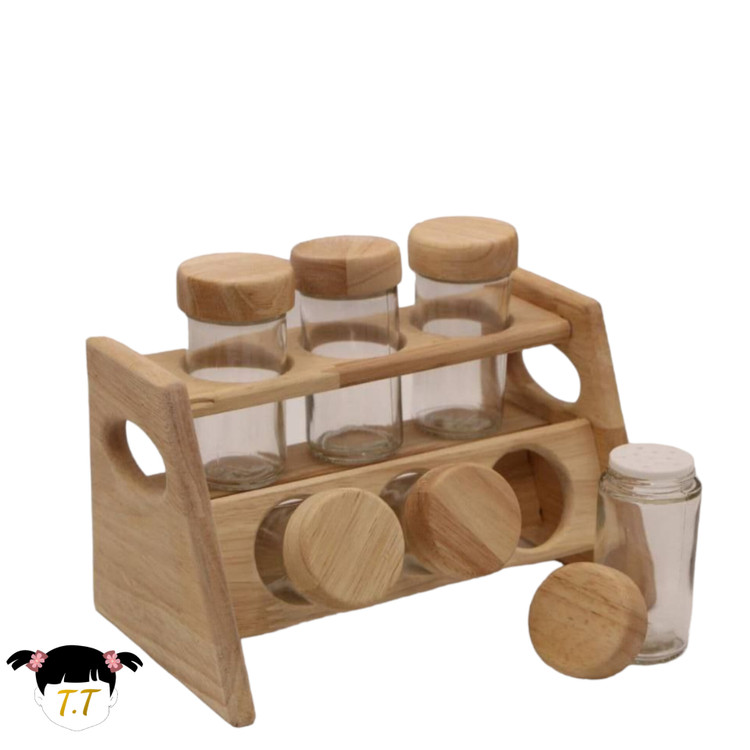 جا ادویه ریزشی 6عددی دو طبقه چوبی رابروود کد99065