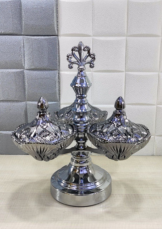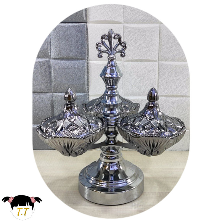 مزه_اردوخوری پایه دار سه خونه دربدار سیلور کروم کد935
