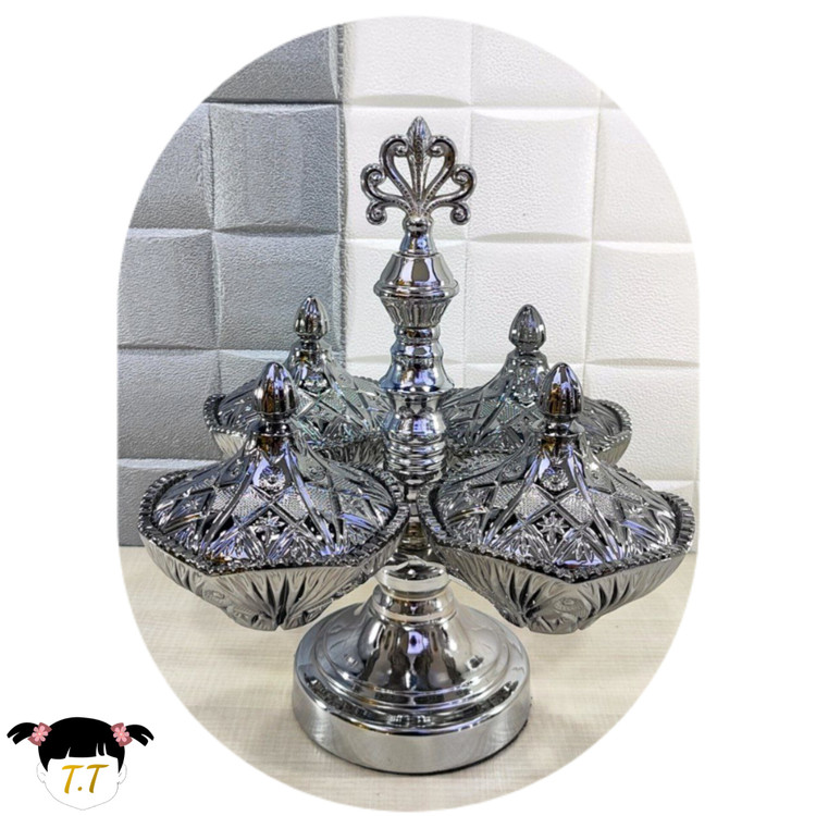 مزه_اردوخوری پایه دار چهار خونه دربدار سیلور کروم کد936