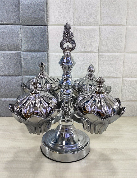 مزه_اردوخوری پایه دار چهار خونه دربدار سیلور کروم کد934