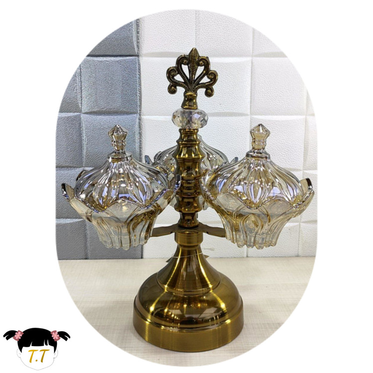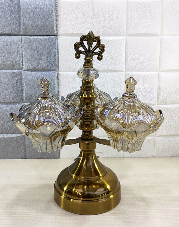 مزه_اردوخوری پایه دار سه خونه دربدار شامپاینی آنتیک کد911