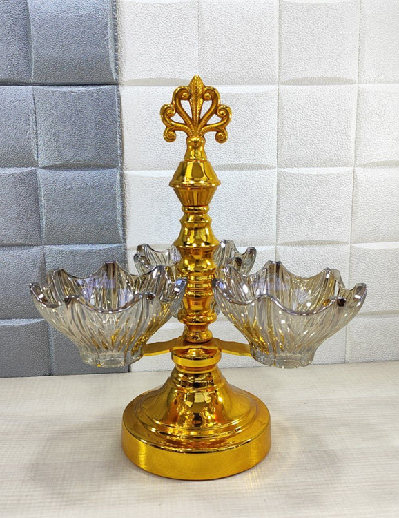 مزه_اردوخوری پایه دار سه خونه شامپاینی طلایی کد985