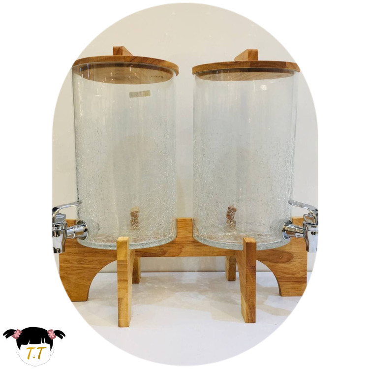 کلمن سرو نوشیدنی دو قلو شیشه نیمه ترگ پایه چوبی کد322_4