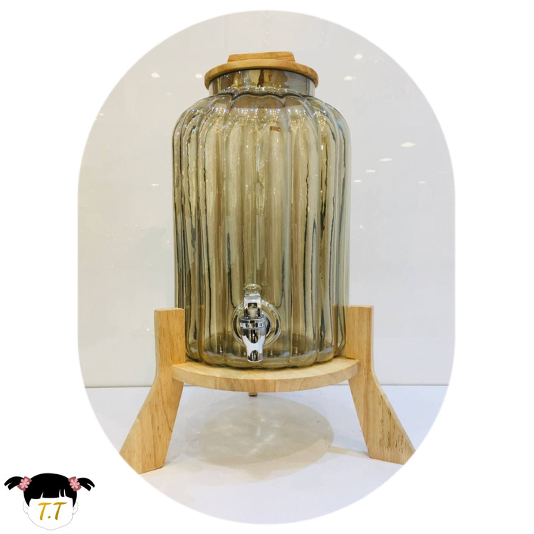 کلمن سرو نوشیدنی استوانه شیشه شامپاینی پایه چوبی کد330