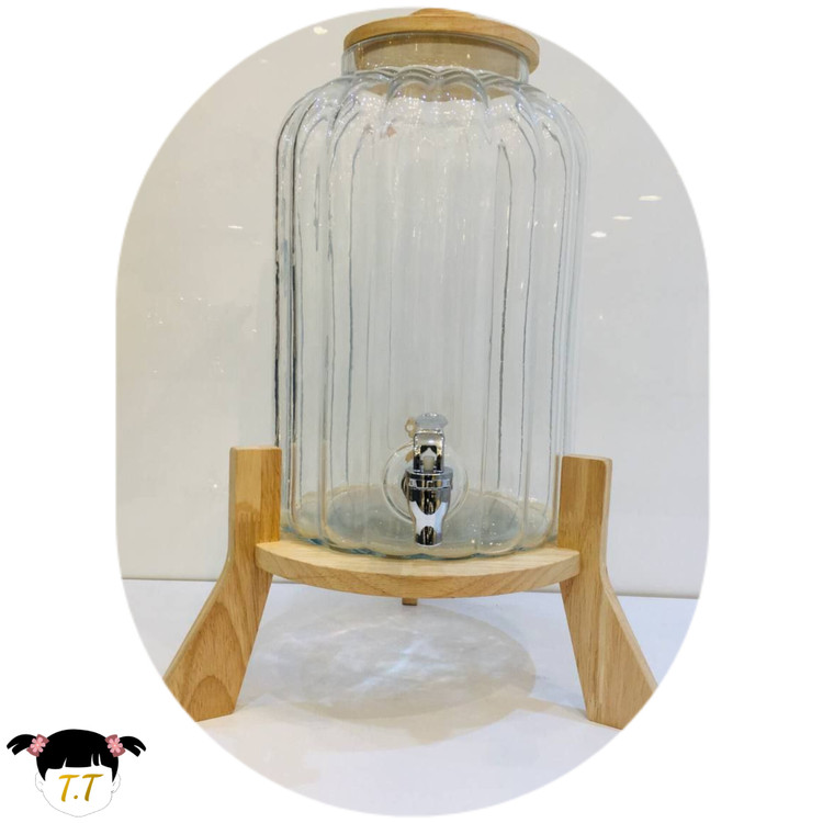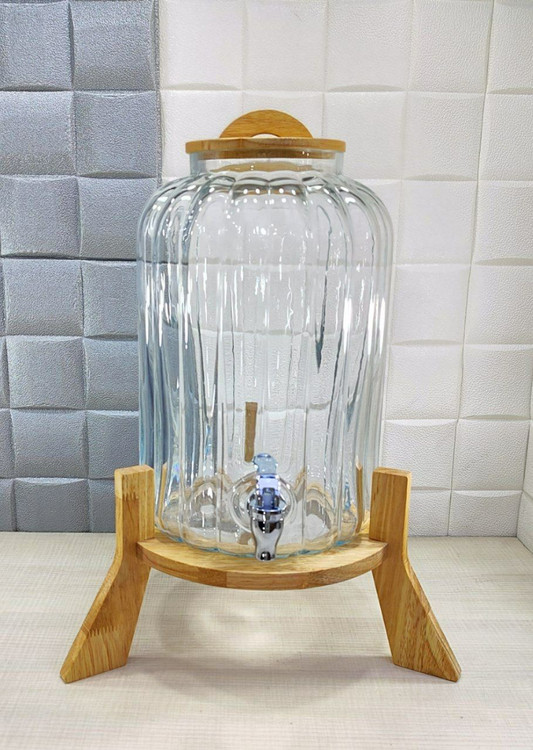 کلمن سرو نوشیدنی استوانه شیشه ساده پایه چوبی کد330_1