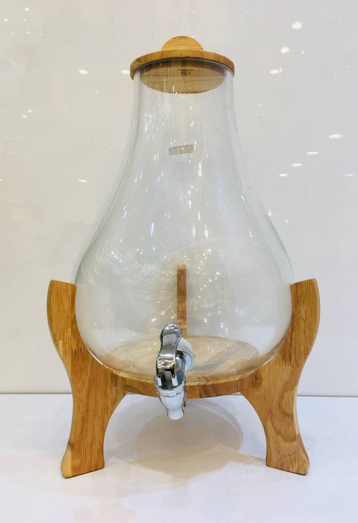 کلمن سرو نوشیدنی خمره ای شیشه ساده پایه چوبی کد325