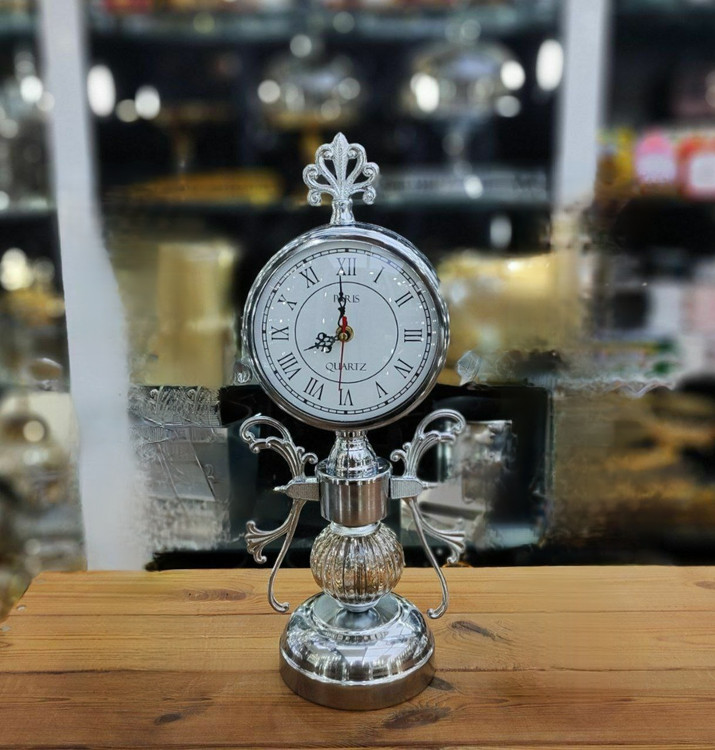 ساعت پایه دار رومیزی رنگ سیلور طلایی آنتیک کد9111