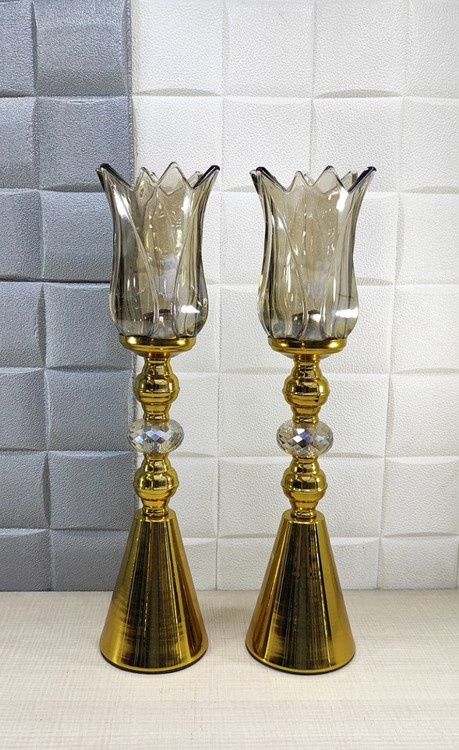 ست شمعدان پایه دار رومیزی رنگ طلایی کد4068