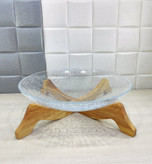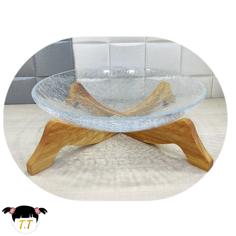 ظرف سرو نیمه گود شیشه ترگ پایه دار چوب رابروود کد400