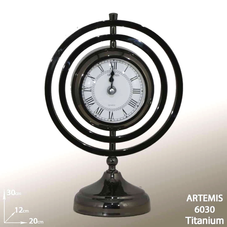 ساعت پایه دار رومیزی رنگ تیتانیومی دودی کد6030