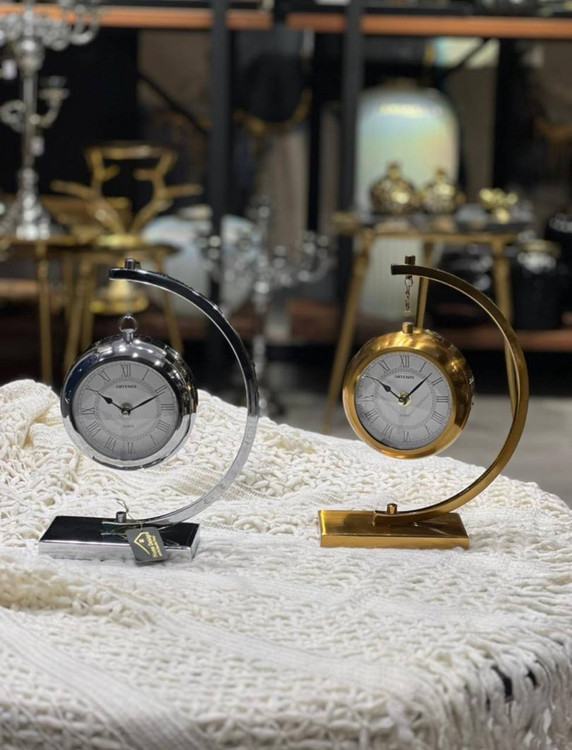 ساعت پایه دار رومیزی رنگ سیلور_طلایی کد30261