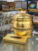 ست سطل و دستمال کاغذی فلزی چکش کاری شده رنگ طلایی و سیلور و برنزی کد201655