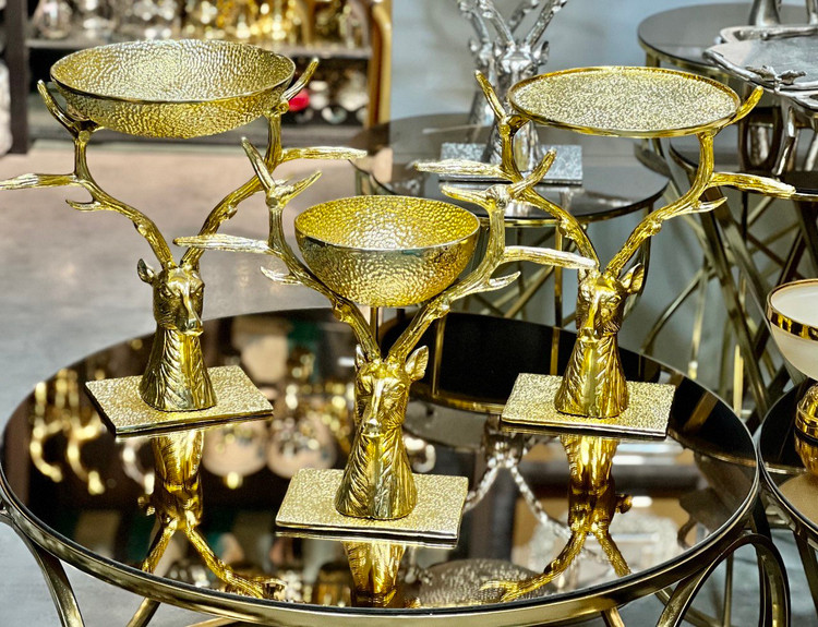 سرویس 3تیکه گوزن آلمینیومی چکش کاری شده طلایی