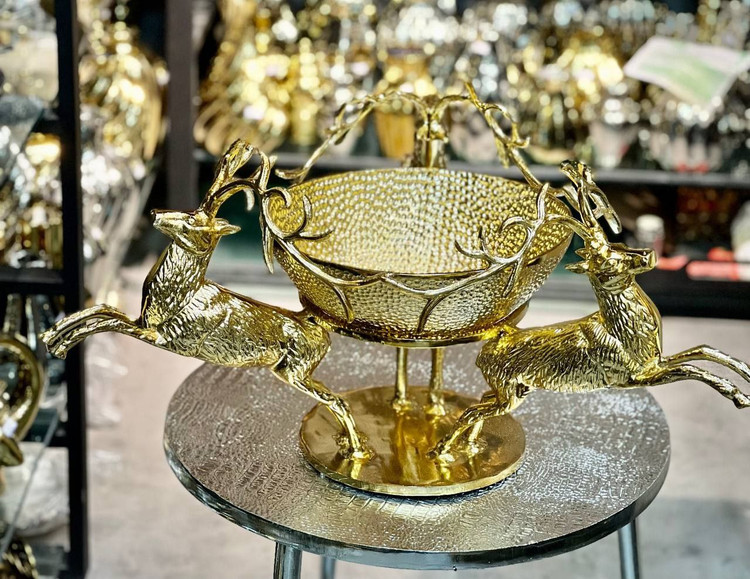 میوه خوری سه گوزن آلمینیومی چکش کاری شده طلایی کد725