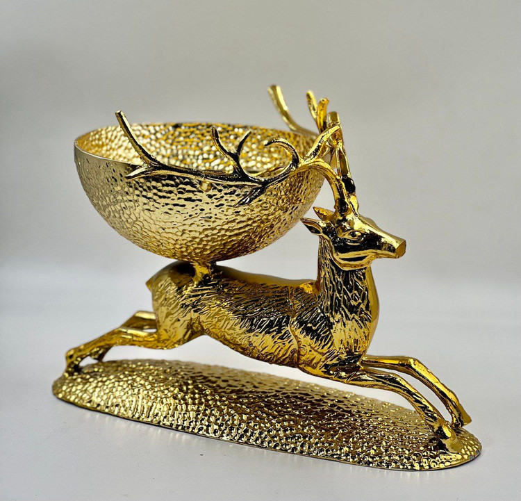 شکلات _ آجیل خوری تک گوزن آلمینیومی چکش کاری شده طلایی کد731