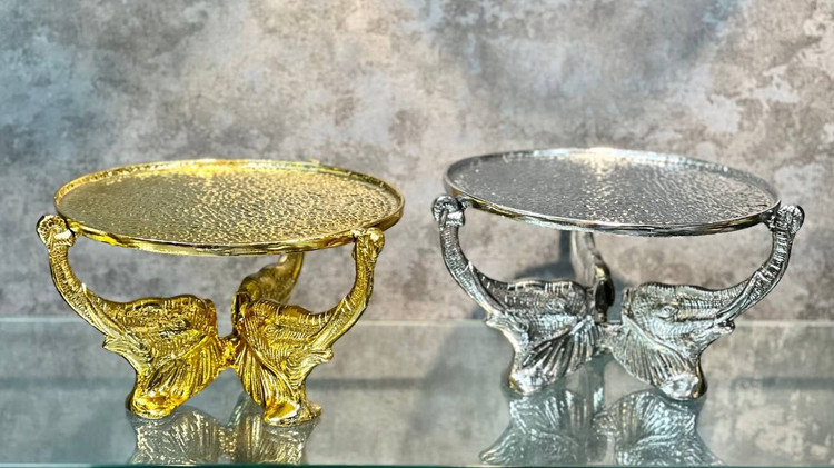 شیرینی خوری سه فیل آلمینیومی چکش کاری شده طلایی_سیلور کد736