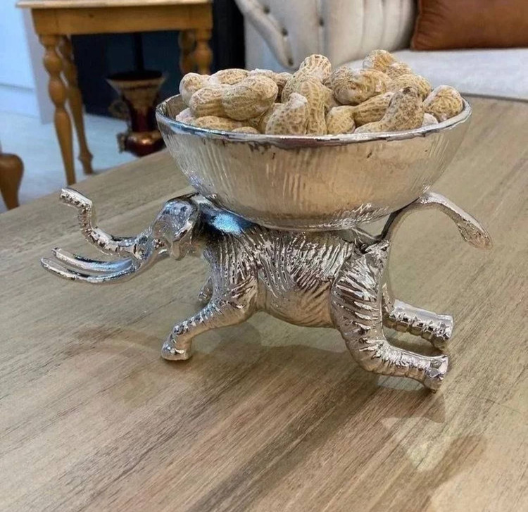 شکلات /آجیل خوری فیل آلمینیومی چکش کاری شده طلایی_سیلور کد764