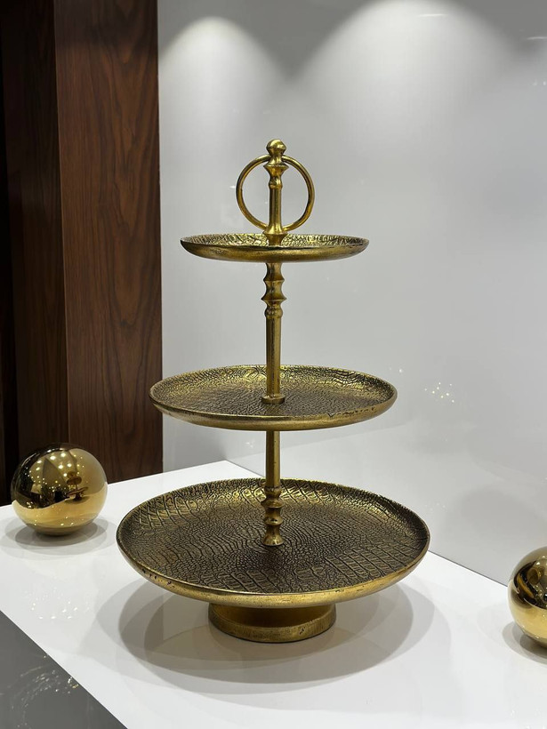 شیرینی/رولت خوری سه طبقه پوست تمساحی آلمینیومی طلایی کد772