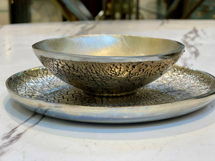 پیاله و پیش دستی پوست تمساحی آلمینیومی سیلور کد770_771S