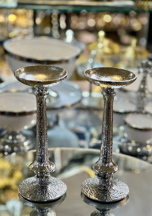 ست جاشمعی گرد پایه دار چکش کاری شده آلمینیومی سیلور کد757