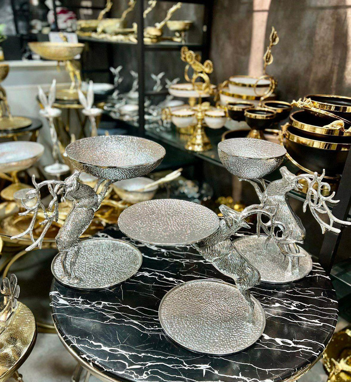 سرویس پذیرایی 3 تیکه گوزن آلمینیومی چکش کاری شده طلایی_سیلور کد785