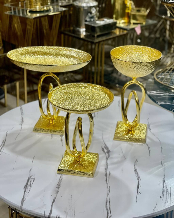 سرویس 4 تیکه چکش کاری شده آلمینیومی طرح حلقه طلایی
