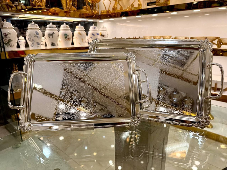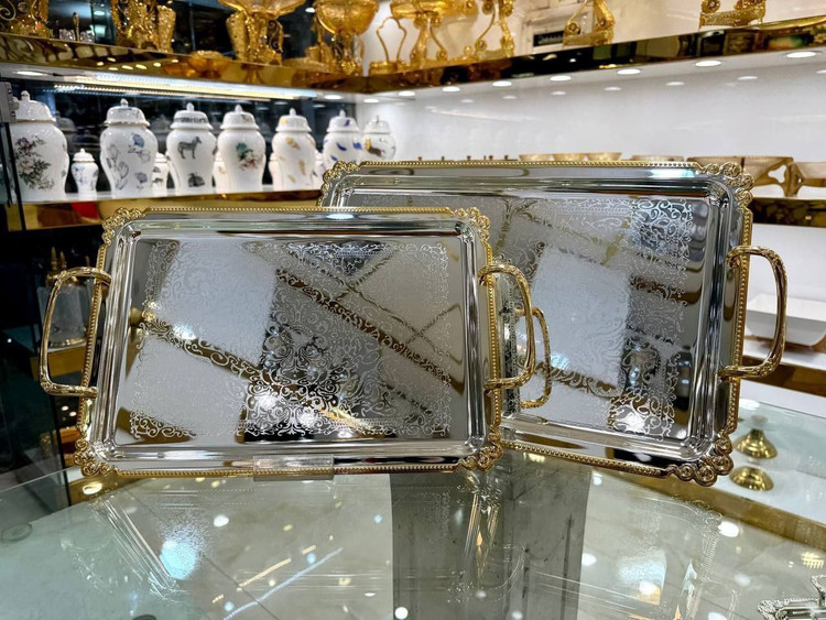 ست سینی پذیرایی استیل وارداتی رنگ دودی/سیلور/طلایی کد۲۱۱۴