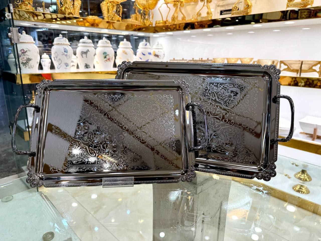 ست سینی پذیرایی استیل وارداتی رنگ دودی/سیلور/طلایی کد۲۱۱۴
