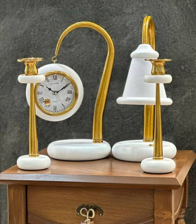 ست ساعت و جاشمعی و آباژور پایه دار رومیزی کد1020