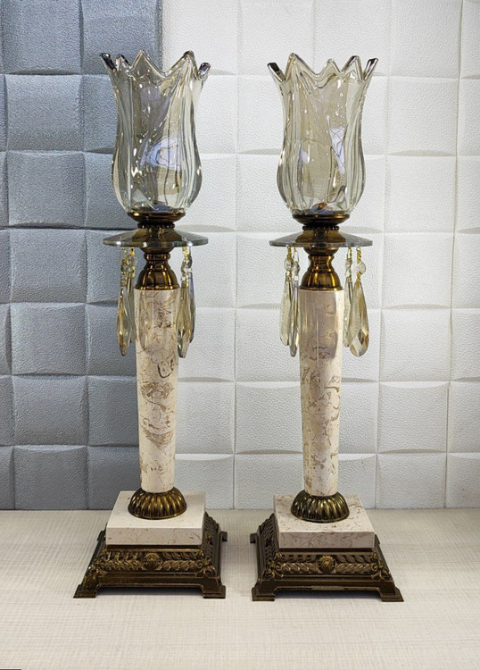 ست شمعدان رومیزی فلز و سنگ آنتیک کد230