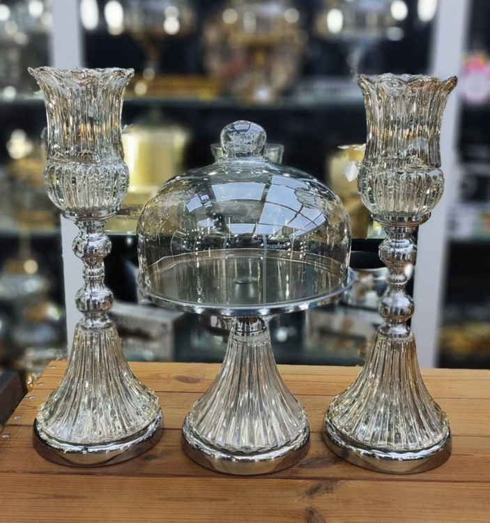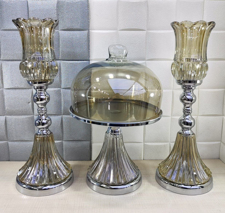 ست شمعدان و کاپ کیک پایه دار فلزی رنگ سیلور کد5033