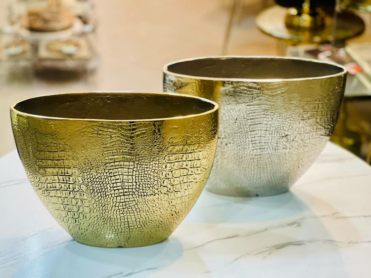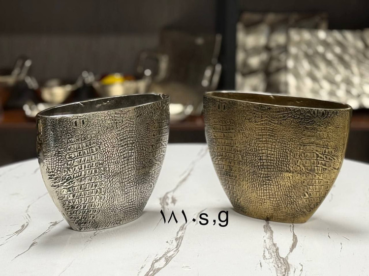 گلدان رومیزی پوست تمساحی آلمینیومی سیلور/طلایی کد00121❗قیمت هر مدل/سایز مجزاست❗