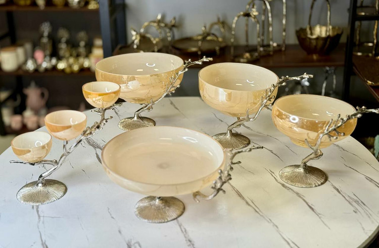 سرویس پذیرایی 5 تیکه بلور آلمینیومی طرح شاخه سیلور کرم