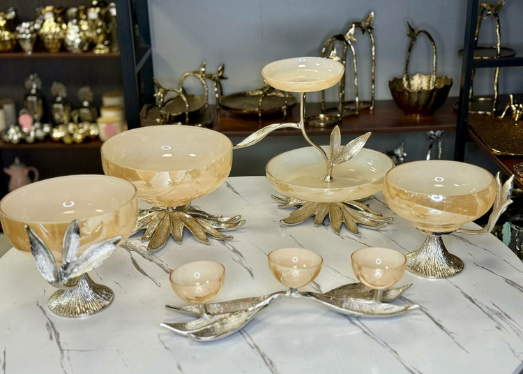 سرویس پذیرایی 5 تیکه بلور آلمینیومی طرح گلبرگ سیلور کرم