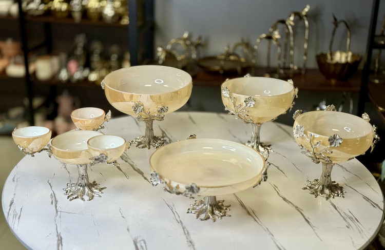سرویس پذیرایی 5 تیکه بلور آلمینیومی طرح درخت سیلور کرم