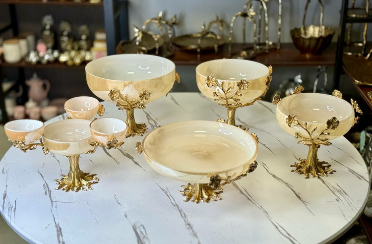 سرویس پذیرایی 5 تیکه بلور آلمینیومی طرح درخت طلایی کرم