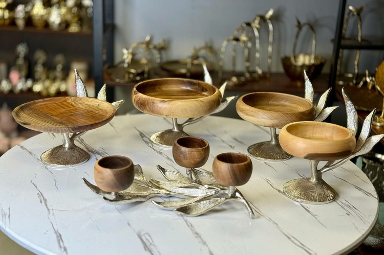 سرویس پذیرایی 5 تیکه چوب گردو طرح گلبرگ سیلور