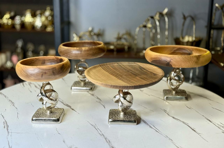 سرویس 4 تیکه پذیرایی چوب گردو آلمینیومی طرح حلقه سیلور