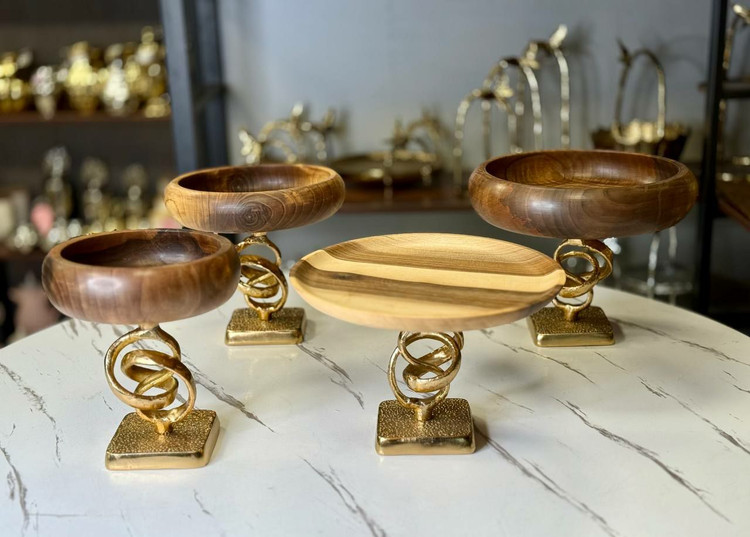 سرویس 4 تیکه پذیرایی چوب گردو آلمینیومی طرح حلقه طلایی