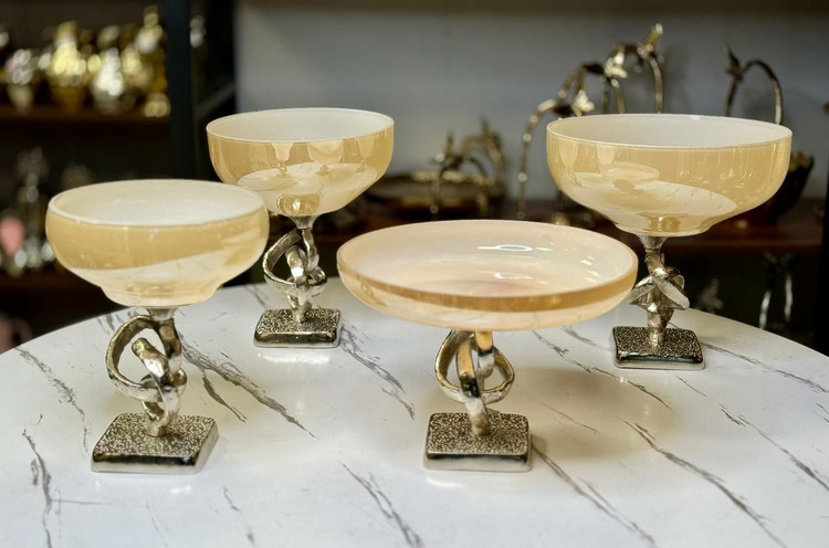 سرویس 4 تیکه پذیرایی بلور و آلمینیوم طرح حلقه سیلور