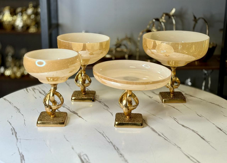 سرویس 4 تیکه پذیرایی بلور و آلمینیوم طرح حلقه طلایی