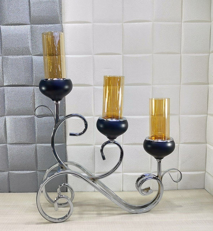 شمعدان رومیزی 3 شعله رنگ سیلور مشکی کد6017