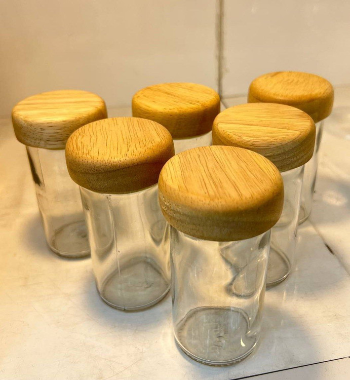 نمکدان/ادویه ریز بلور درب چوبی