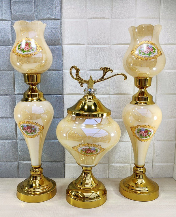 ست شمعدان/بانکه فلزی مدل گلدار رنگ طلایی کد9019