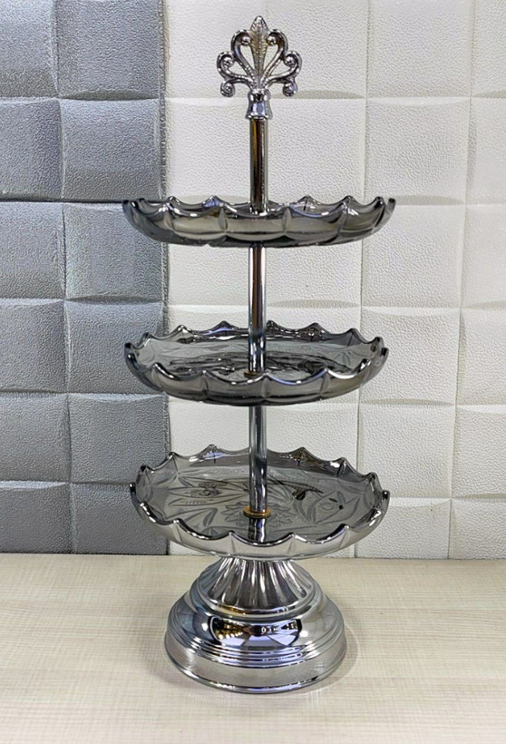 مزه/شیرینی خوری پایه دار سه طبقه سیلور کروم کد4014