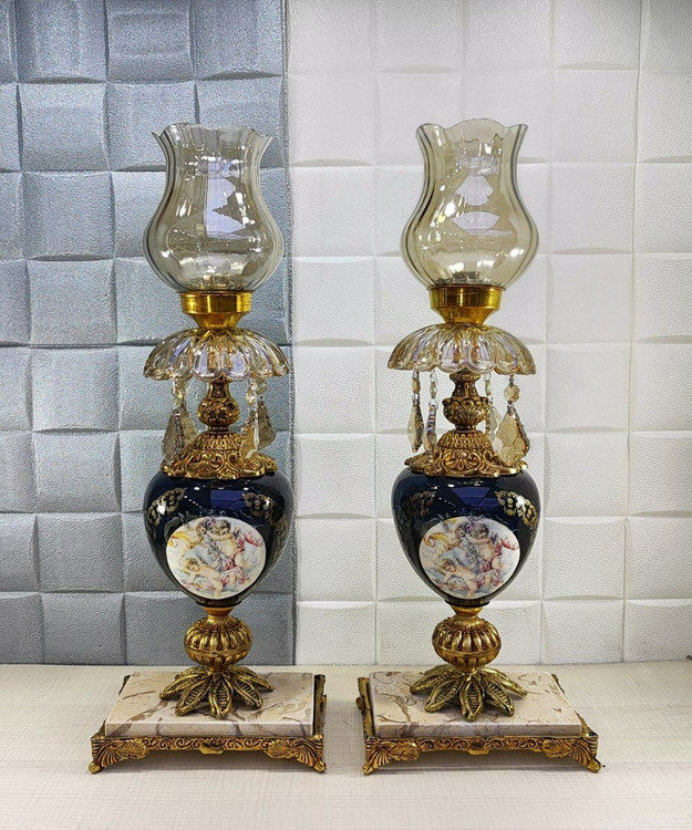 ست شمعدان رومیزی فلز و سنگ مدل کلاسیک آنتیک کد0113