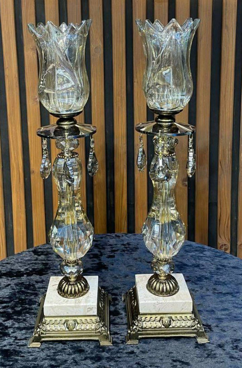 ست شمعدان رومیزی فلز و سنگ و کریستال مدل کلاسیک آنتیک کد350