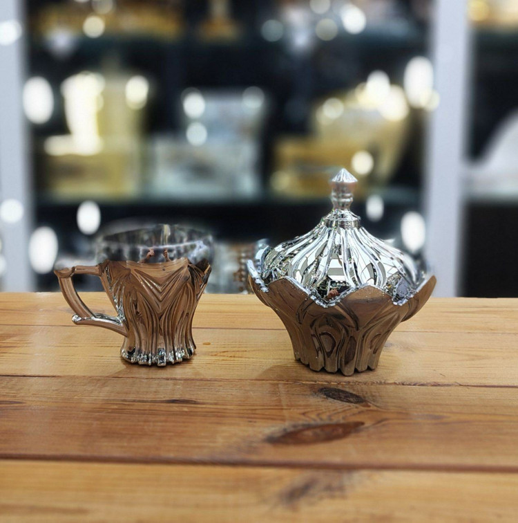 ست قندان/فنجان چایخوری بلور کرومی مدل ورسای کد10160