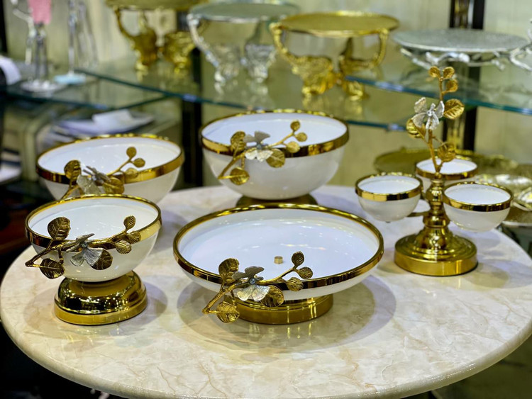سرویس پذیرایی 5تیکه فلزی طلایی سفید مدل ارکیده کد1422